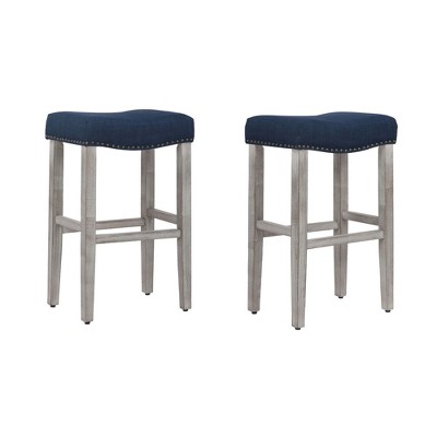 WestinTrends 29" Upholstered Saddle Seat Bar Stool (Set of 2), Antique Gray/Navy Blue