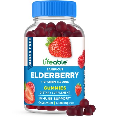 Lifeable - Sugar Free - Sambucus Elderberry + Vitamin C and Zinc - Adults - 60 Gummies