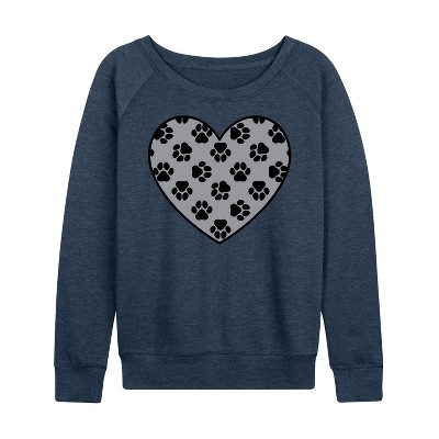 Women's - Instant Message - Paw Fill Heart Lightweight French Terry Wide Neck Long Sleeve Graphic Shirt