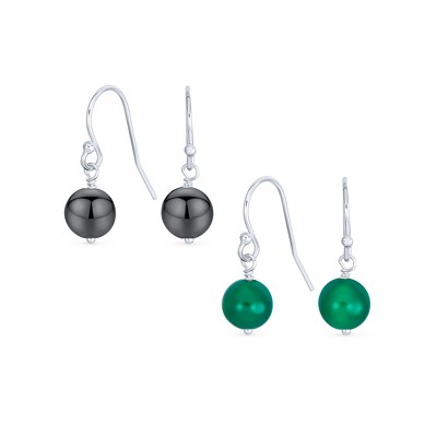 Bling Jewelry Set of 2 Natural Stone Bead Drop Earrings in Sterling Silver