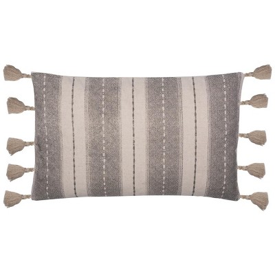 HomeRoots 14" X 36" Gray And White 100% Cotton Geometric Zippered Pillow