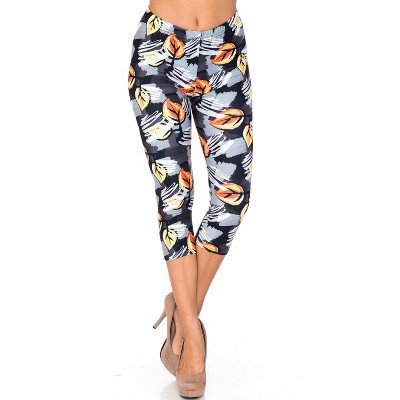 Creamy Soft Orange Leaf Breeze Capris - USA Fashion (One Size Regular,Charcoal)