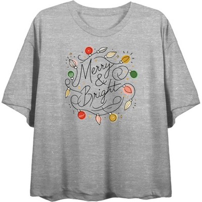 Merry & Bright Christmas Lights Women's Crew Neck Short Sleeve Crop Tee