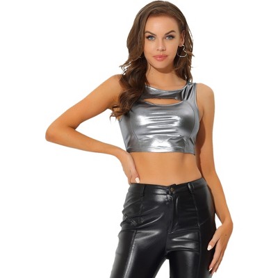 INSPIRE CHIC Women's Halter Neck Cutout Shiny Party Sequin Crop Top