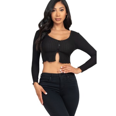 Slickblue Women's Ribbed Long Sleeve Button-Front Top, Cropped Fit, Casual Stretch Style, 10 Color Options, Size S-L