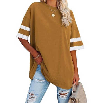 Imily Bela Womens Long Sleeve T Shirts Casual V Neck Color Block Tunic Tops Loose Basic Top
