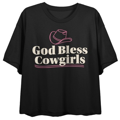 God Bless Cowgirls Women's Athletic Heather Crew Neck Short Sleeve Crop Top