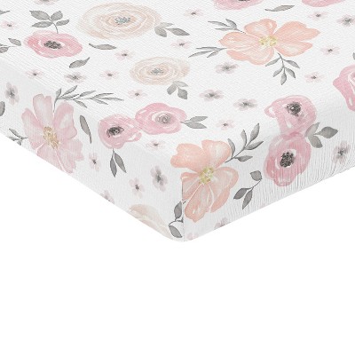 Sweet Jojo Designs Baby Girl Fitted 100% Cotton Muslin Crib Sheet Watercolor Floral Pink Grey and White