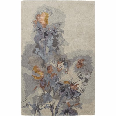Blue and Gray Wool Floral Hand Tufted Area Rug