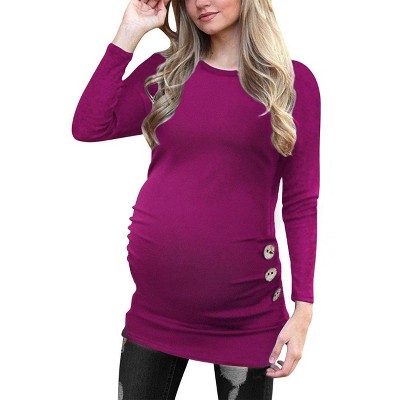 Coolmee Maternity Shirt Long Sleeve Basic Top Ruch Sides Bodycon Tshirt for Pregnant Women with Button