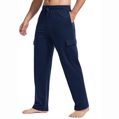 Pinspark Men's Cargo Sweatpants with Pockets Open Bottom Baggy Cotton Jogger Sweatpants Uncuffed Lounge Pants Straight Leg