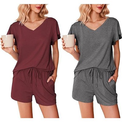 Ekouaer 2 Pack Women's Pajamas Set Soft Ruffle Sleeve Pjs Set Casual V Neck Lounge Set with Pockets