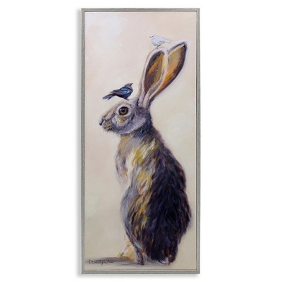 Stupell Industries Minimal Rabbit & Perched Birds Framed Giclee Art, Gray, 10" x 24"