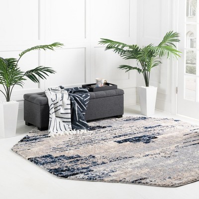 navy and white rug