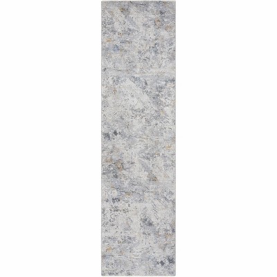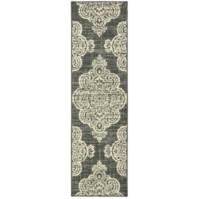 10' Gray and Dark Gray Floral Power Loom Runner Rug