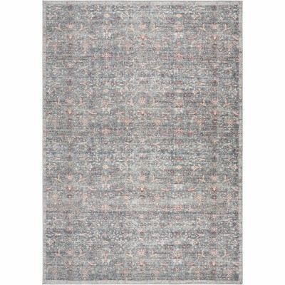 Washable Area Rug for Bedroom Large Living Room Soft Rug, Non Slip Medallion Oriental Floor Carpet, Low Pile Indoor Vintage Distressed Rug