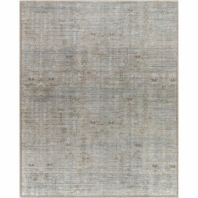 Area Rug, Washable Rug - Gray Vintage 8x10ft Traditional Distressed Indoor Foldable Thin Non Slip Carpet, Retro Accent Mat