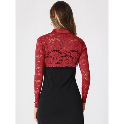 Allegra K Women's Elegant Sheer Floral Lace Crop Bolero Shrug 2 Packs