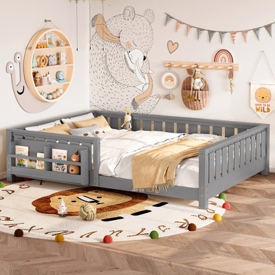 gray solid wood platform bed