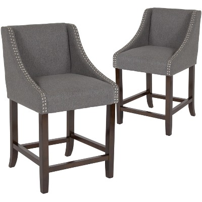 Flash Furniture Carmel Series 24" High Transitional Wood Counter Height Stool with Accent Nail Trim, Set of 2