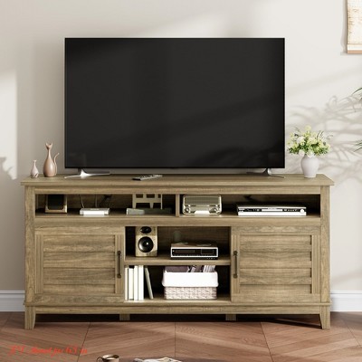 Costway TV Stand for TV up to 55 Inch Television Cabinet with 2 Open Shelves Sliding Doors