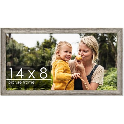 PosterPalooza | 14x8 Thin Barnwood Picture Frame, UV Acrylic, 2 Finishes - Grey and Black