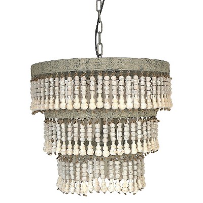 14" LED 2-Light Justina Wood Bead Iron Pendant Taupe/Chrome - JONATHAN Y