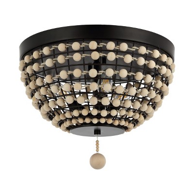12.5" 1-Light Abril Rustic Bohemian Iron/Wood Bead LED Pendant Oil Rubbed Bronze/Brown - JONATHAN Y: Eco-Friendly Dimmable Orb Fixture