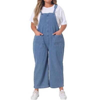 Agnes Orinda Women's Plus Size Denim Bib Classic Adjustable Straps Pockets Jean Jumpsuits