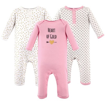 Hudson Baby Infant Girl Cotton Coveralls 3pk, Heart