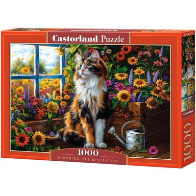 1000 Piece Jigsaw Puzzle, Blooming Cat Meditation, Cat puzzle, Flower scenery, Charming view, Adult Puzzle, Castorland C-105342-2
