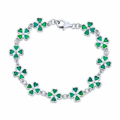 Bling Jewelry Good Luck Charm Created Opal Inlay Green Clover Heart Shaped Link Bracelet Sterling Silver