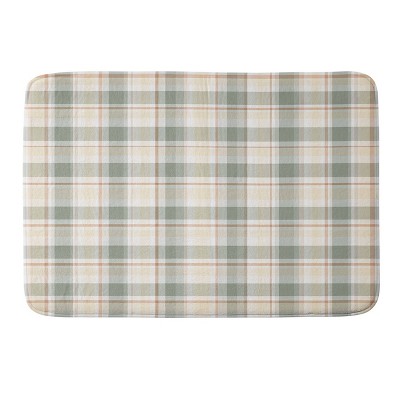 Light Cottage Plaid Memory Foam Bath Rug - Deny Designs: Green, Lightweight, Microfiber, 1'9"x2'10", Low Pile, Rectangle