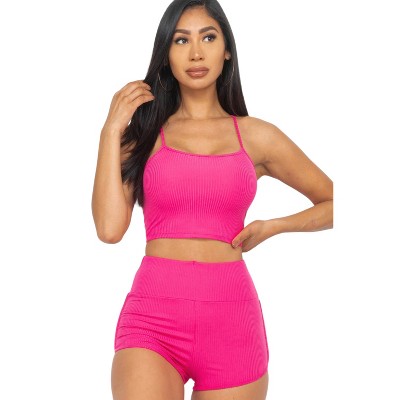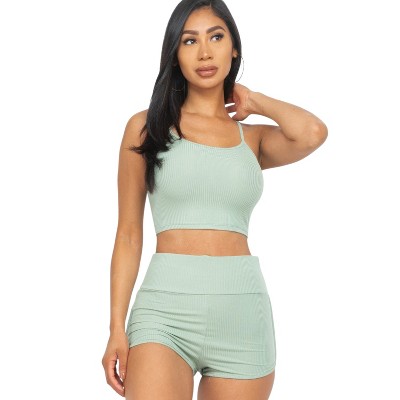 Slickblue Cut-Out Tie Side Crop Top & Ruched Midi Skirt Set - Spaghetti Strap 2-Piece Outfit for Women, Color & Size Options
