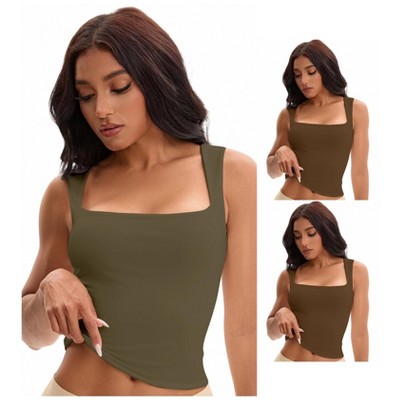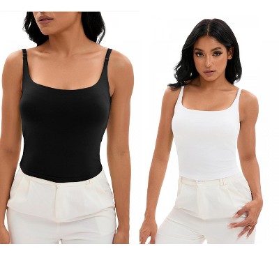 INSPIRE CHIC 2 Pcs Women's Square Neck Cami Vest Shelf Bra Adjustable Spaghetti Strap Tank Camisole