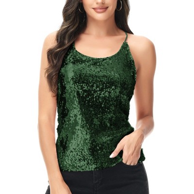 Anna-Kaci Women's Sequined Spaghetti Strap V-Neck Camisole Top for Party and Night Out