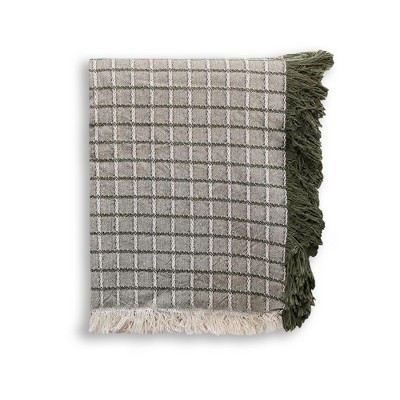 HomeRoots 50" X 67" Olive Green Cotton Blend Woven Throw Blanket with Fringe