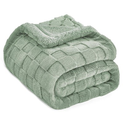 Itopfox Ultra Soft Fleece Checkered Throw Blanket for Women Men, Cozy Plush Blanket for Couch Bedroom Home Decor, Sage Green