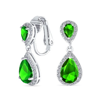Bling Jewelry Set of 2 Clear & Green Cubic Zirconia CZ Teardrop Long Dangle Chandelier Prom Statement Earrings Sterling Silver
