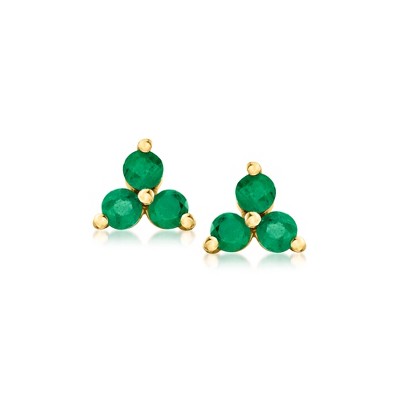Pure Collection by Ross-Simons 0.10 ct. t.w. Emerald 3-Stone Stud Earrings in 14kt Yellow Gold