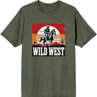 Wild West Cowboy Sunset Ride Adult Crew Neck Short Sleeve Tee