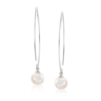 Ross-Simons 8-8.5mm Cultured Pearl Threader Drop Earrings in Sterling Silver