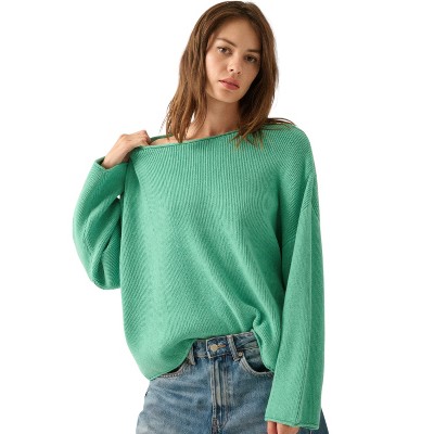 Slickblue Women's Oversized Boatneck Sweater, Dropped Shoulder Sleeves, Casual Layering Piece, Pink/Pine Green, S-L