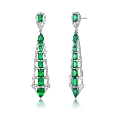 Bella Silver Sterling Silver, White & Cushion-Cut CZ Earrings - Emerald - Green