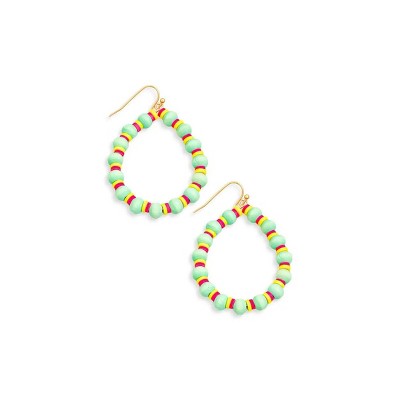 Slickblue Hoop Earrings, Boho Round Hoops with Beads, Festival Earrings, Wood Rubber Mix, 1.5", Gold Mint