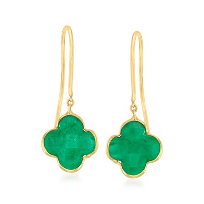 Ross-Simons Italian 3.60 ct. t.w. Emerald Clover-Shaped Drop Earrings in 14kt Yellow Gold
