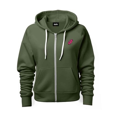 Dalix Heartly Ghost Embroidered Fleece Zip Hoodie Cold Fall Winter Women in Military Green XL X-Large
