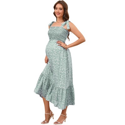 Women's Maternity Summer Sleeveless Maxi Dress Casual Smocked Strapless Floral Flowy Tube Top Dress Photoshoot Baby Shower