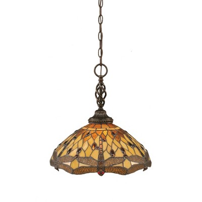 Toltec Lighting Elegante 1 - Light Pendant in Dark Granite with 16" Amber Dragonfly Art Glass Shade