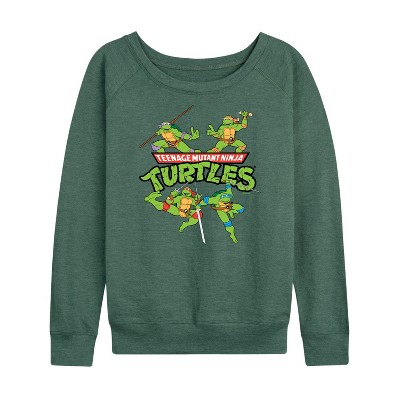 Women's - Teenage Mutant Ninja Turtles - Donnie, Mikey, Raph, and Leo Logo Lightweight French Terry Wide Neck Long Sleeve Graphic Shirt